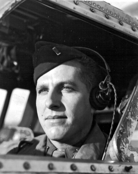 50 years later… Ball Turret gunner Francis Lynam at the controls during a flight aboard the EAA’s B-17 Aluminum Overcast in 1994.