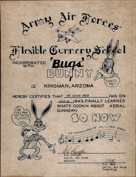 Albert Green’s Gunnery Training certificate from Kingman, Arizona.