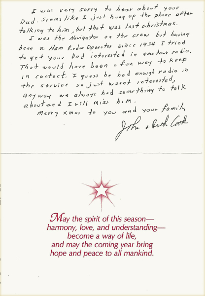 At Christmas, the crew Navigator John Cook sent condolences to the Green family