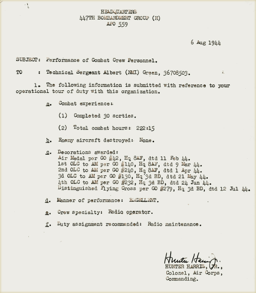 Albert Green’s copy of the Pictorial History of the 447 Bombardment Group (H)